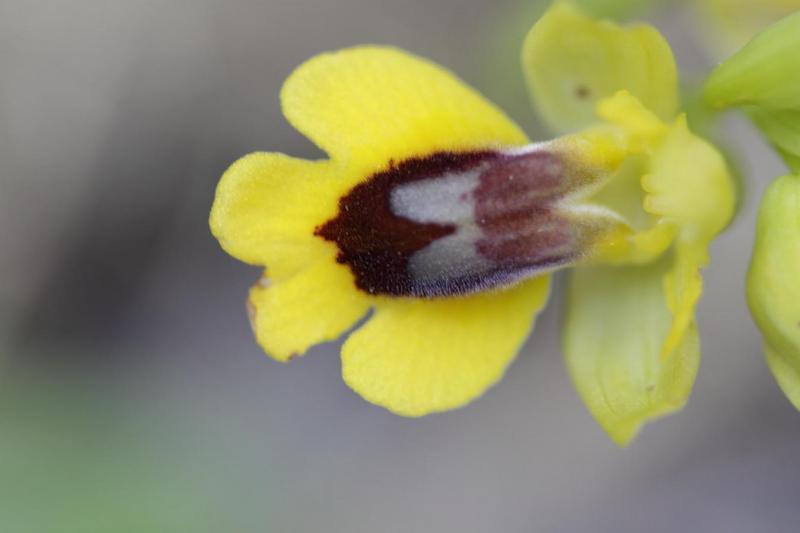 Orchis lutea is a cold growing orchid belonging to the sub family Orchidoideae.