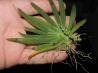 Monopodial. Each new growth has numerous rigid lance shaped, oblong shaped leaves