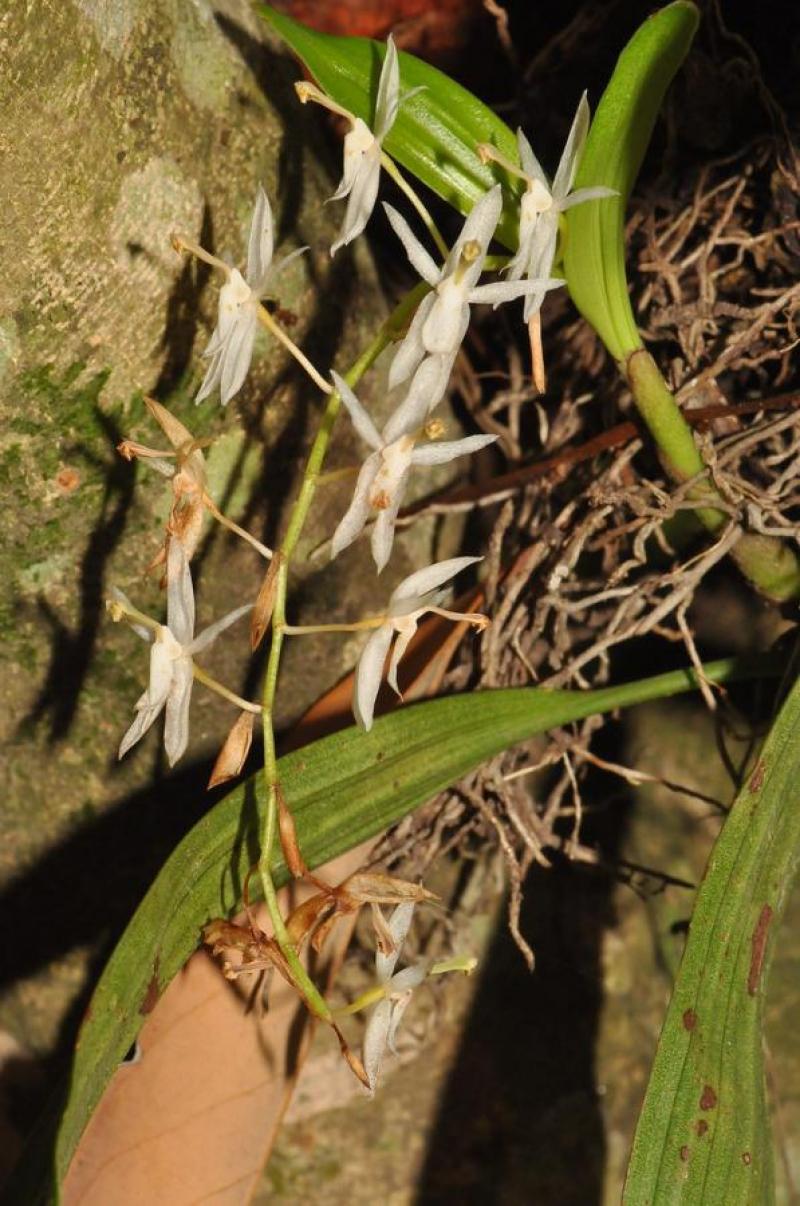 Also known as: The White Otochilus or Coelogyne alba Broughtonia pendula in the subfamily: Epidendroideae