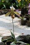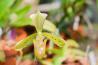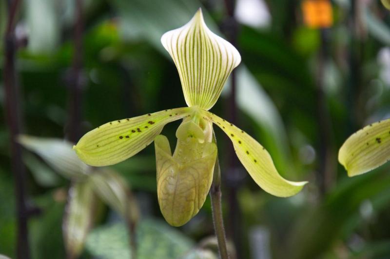 The Bald Paphiopedilum is a warm growing epiphytic orchid belonging to the sub family Cypripedioideae. The name refers to the flowers having no hairs.