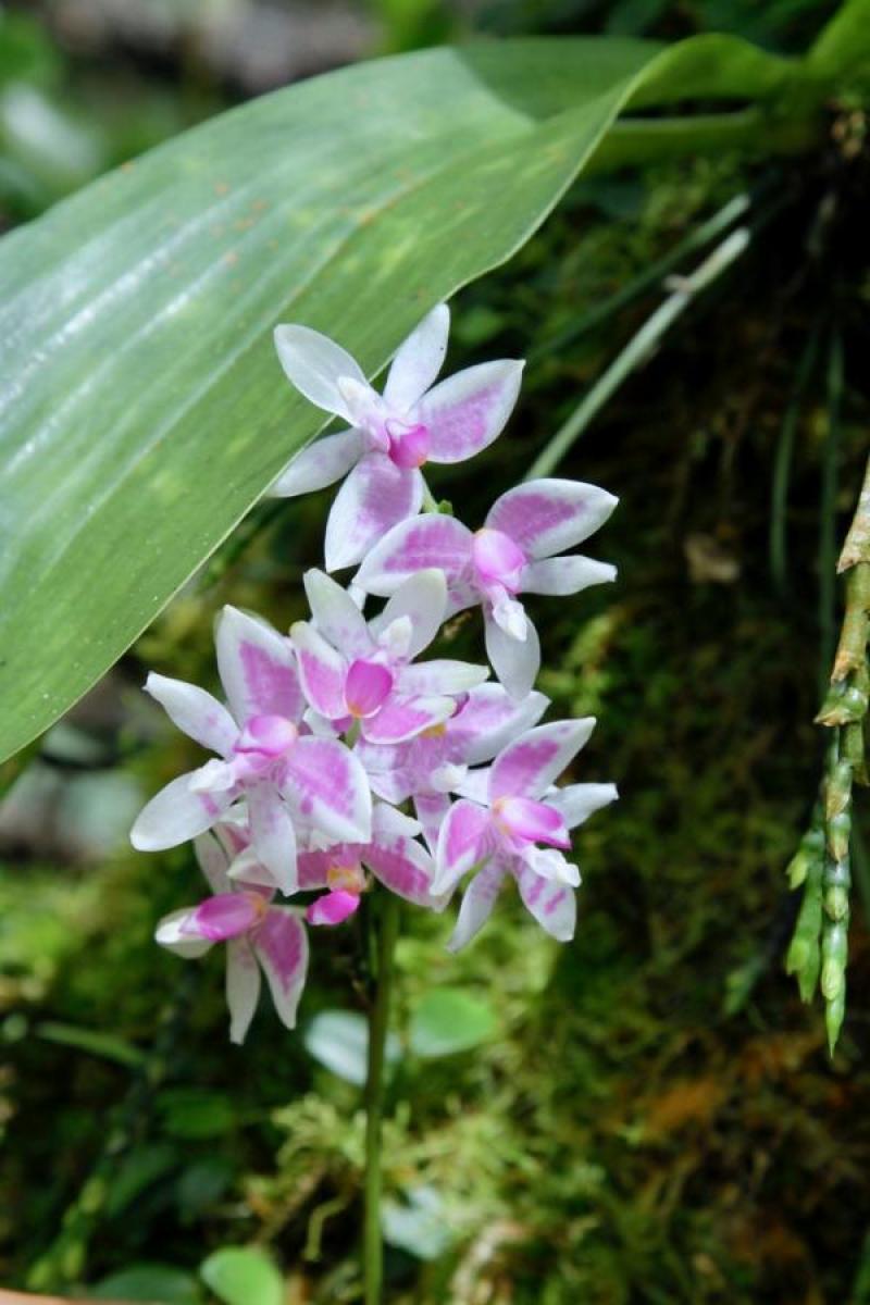 The Modest Phalaenopsis is a small monopodial hot growing epiphytic orchid belonging to the sub family Epidendroideae. It is named after the flowers are partially obscured by the leaves.