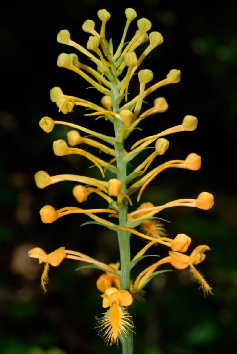 Also known as: Yellow Fringed Orchid. or Blephariglottis flaviflora Habenaria ciliaris var. alba in the subfamily: Orchidoideae