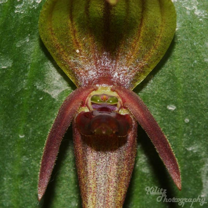The Fleshy Lipped Pleurothallis is an orchid belonging to the sub family Epidendroideae.