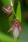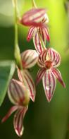 Each new growth has a single leathery erect, elliptic, oblong shaped leaf that grows to 2-30cm long. Pseudobulbs grow to 7-80cm. The plant forms clusters over time