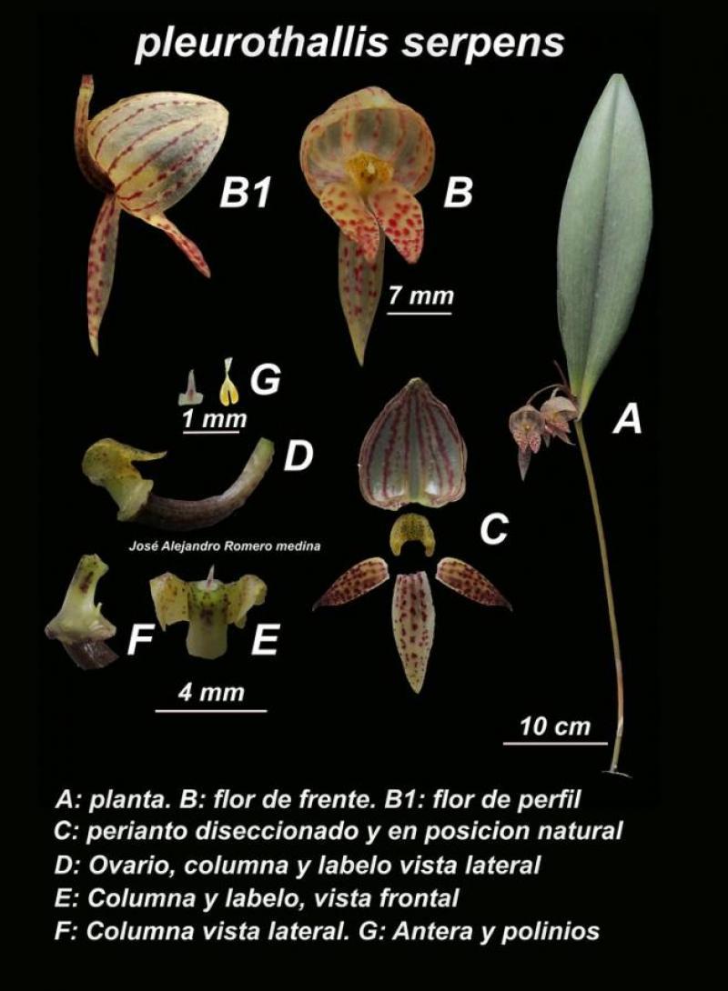 The Creeping Pleurothallis is an orchid belonging to the sub family Epidendroideae. The name refers to the rhizome.