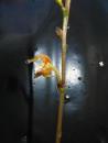 Each new growth has a single erect elliptic, lance shaped, terete shaped leaf