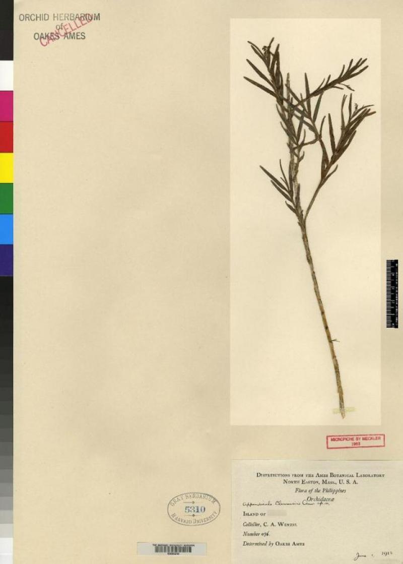 Podochilus clemensiae is an orchid belonging to the sub family Epidendroideae.