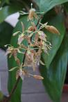 Grows to 45cm. Each new growth has a single erect elliptic, lance shaped leaf that grows to 4-40cm long. Pseudobulbs grow to 1.8-4.5cm