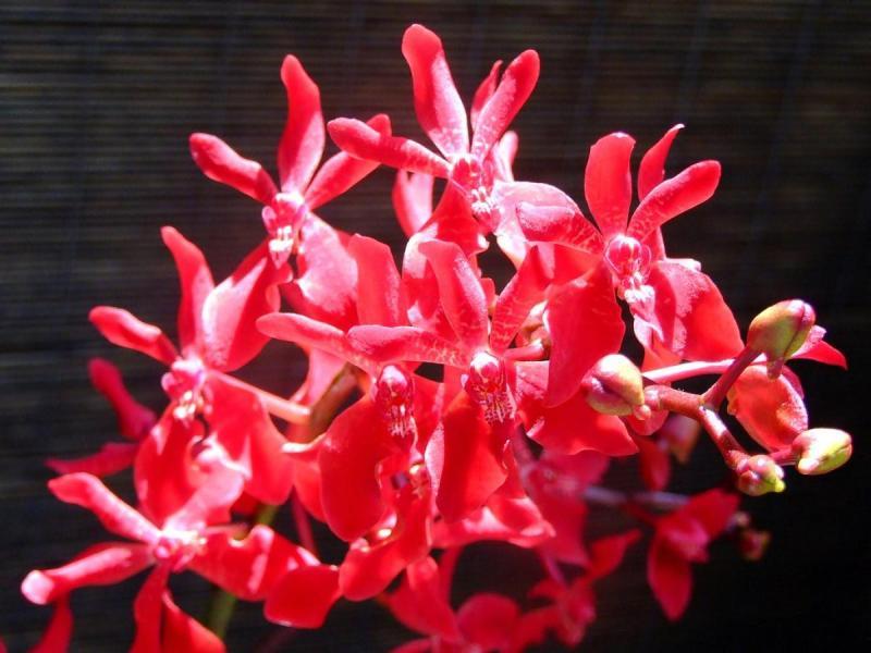 The Scarlet Renanthera is a large monopodial cool to warm growing epiphytic or lithophytic orchid belonging to the sub family Epidendroideae native to China, Myanmar and Thailand.