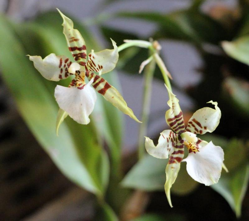 Sympodial. Grows to 8-22cm. Each new growth has numerous oblong shaped leaves that grow to 5-16cm long. Pseudobulbs grow to 2.5-6.5cm