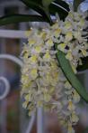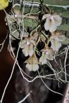 Sympodial. Grows to 10-40cm. Each new growth has a single leathery thick, oblong shaped leaf that grows to 3-35cm long. Pseudobulbs grow to 3-5cm. The plant tends to climb or sprawl with each new growth