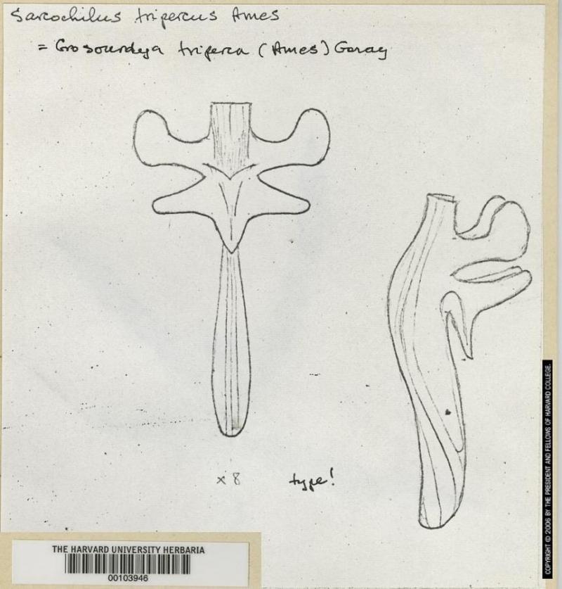 Sarcochilus tripercus is an orchid belonging to the sub family Epidendroideae.