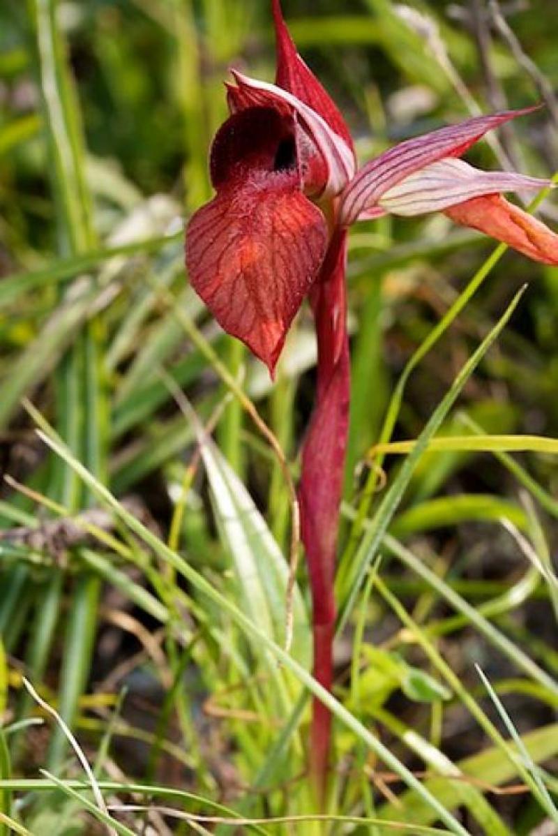 Serapias patmia is a cool to warm growing terrestrial orchid belonging to the sub family Orchidoideae.