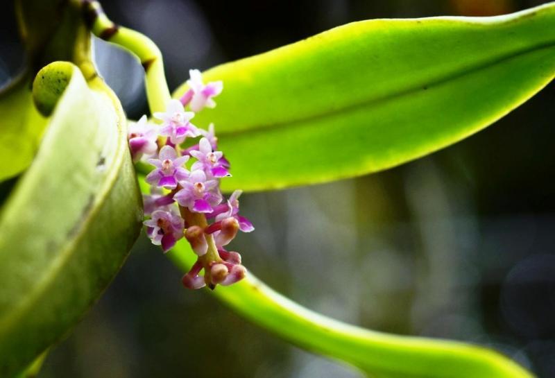 The Small Flowered Smitinandia is a small monopodial cool to warm growing epiphytic orchid belonging to the sub family Epidendroideae native to Bhutan, Cambodia, Myanmar, India, and Thailand.