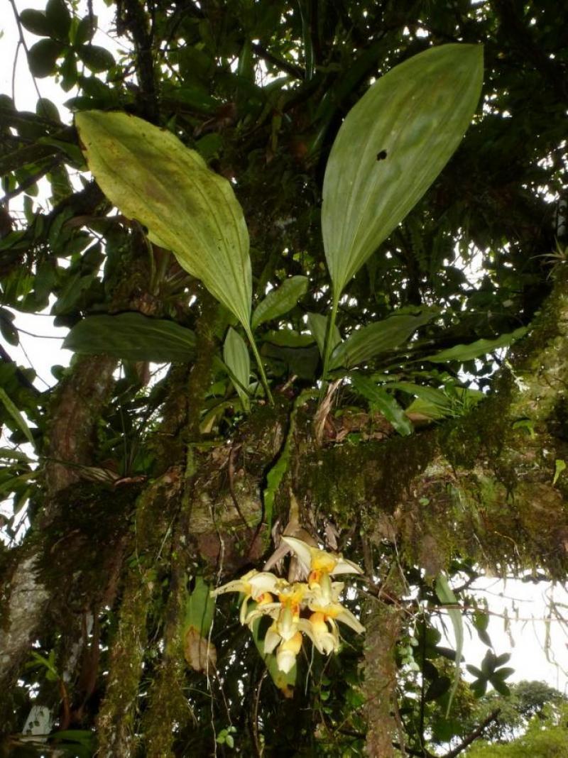 Stanhopea carchiensis is a medium sized cool to warm growing epiphytic or terrestrial orchid belonging to the sub family Epidendroideae.
