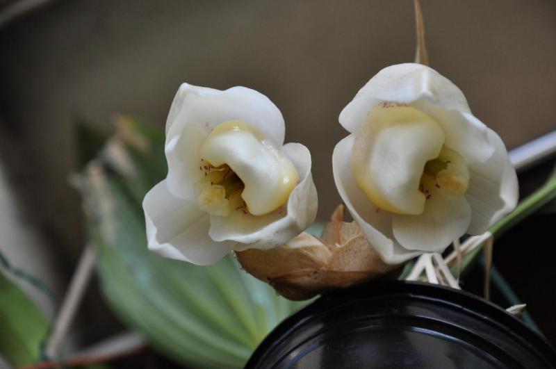 Also known as: The Hornless Stanhopea or Stanhopeastrum ecornutum Stanhopea calceolus in the subfamily: Epidendroideae