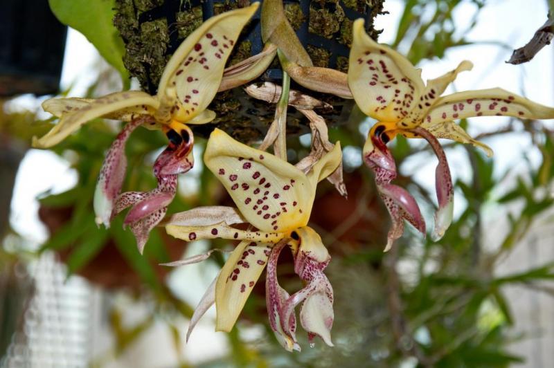 The Large Flowered Stanhopea is a medium sized sympodial warm to hot growing epiphytic orchid belonging to the sub family Epidendroideae native to Colombia and Mexico.