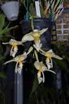 Sympodial. Grows to 24cm. Each new growth has numerous elliptic leaves that grow to 4.5-11.5cm long. Pseudobulbs grow to 2.5-5cm
