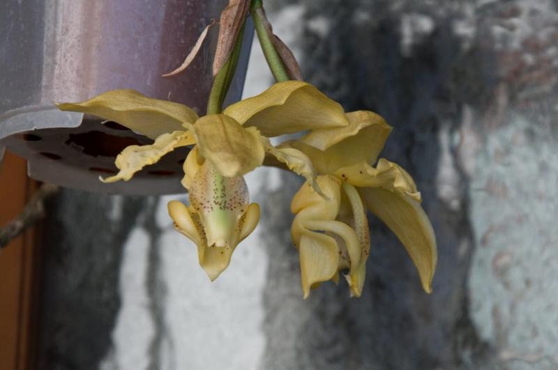 Also known as: The Handled Stanhopea or Stanhopea vasquezii in the subfamily: Epidendroideae