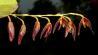 Grows to 22cm. Each new growth has a single erect arching, elliptic, oblong shaped leaf that grows to 3.9-11cm long. Pseudobulbs grow to 11cm