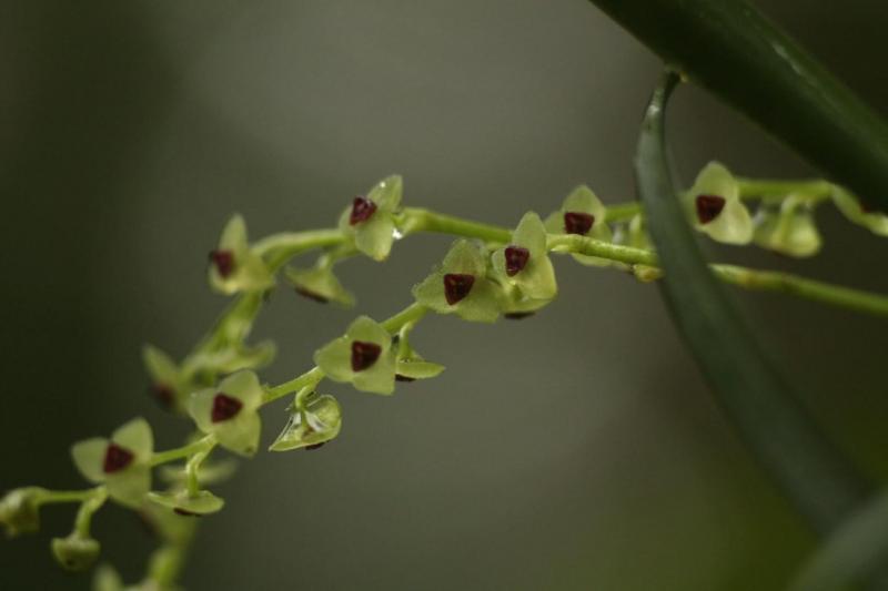 Grows to 0.05-12cm. Each new growth has a single erect leaf that grows to 0.4-7cm long. Pseudobulbs grow to 0.1-2cm