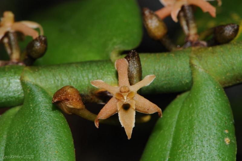 Also known as: The Floriferous Tridactyle or Tridactyle trachyrrhiza Summerhayesia rwandensis Rhaphidorhynchus lepidotus Tridactyle anthomaniaca ssp. anthomaniaca Tridactyle lepidota Tridactyle anthomaniaca ssp. nana Angraecum lepidotum Angraecum trachyrrhizum Angraecum wittmackii Listrostachys wittmackii in the subfamily: Epidendroideae