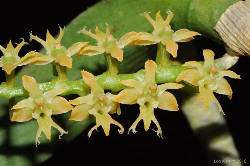 The Two is a large monopodial cool to hot growing epiphytic, lithophytic or terrestrial orchid belonging to the sub family Epidendroideae native to Burundi, Cameroon, Ghana, Liberia, Malawi, Mozambique, Nigeria, Rwanda, Uganda, and Zimbabwe.