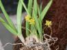 Sympodial. Grows to 2.5-10cm. Each new growth has a single lance shaped oblong shaped leaf that grows to 1-10cm long. Pseudobulbs grow to 2cm