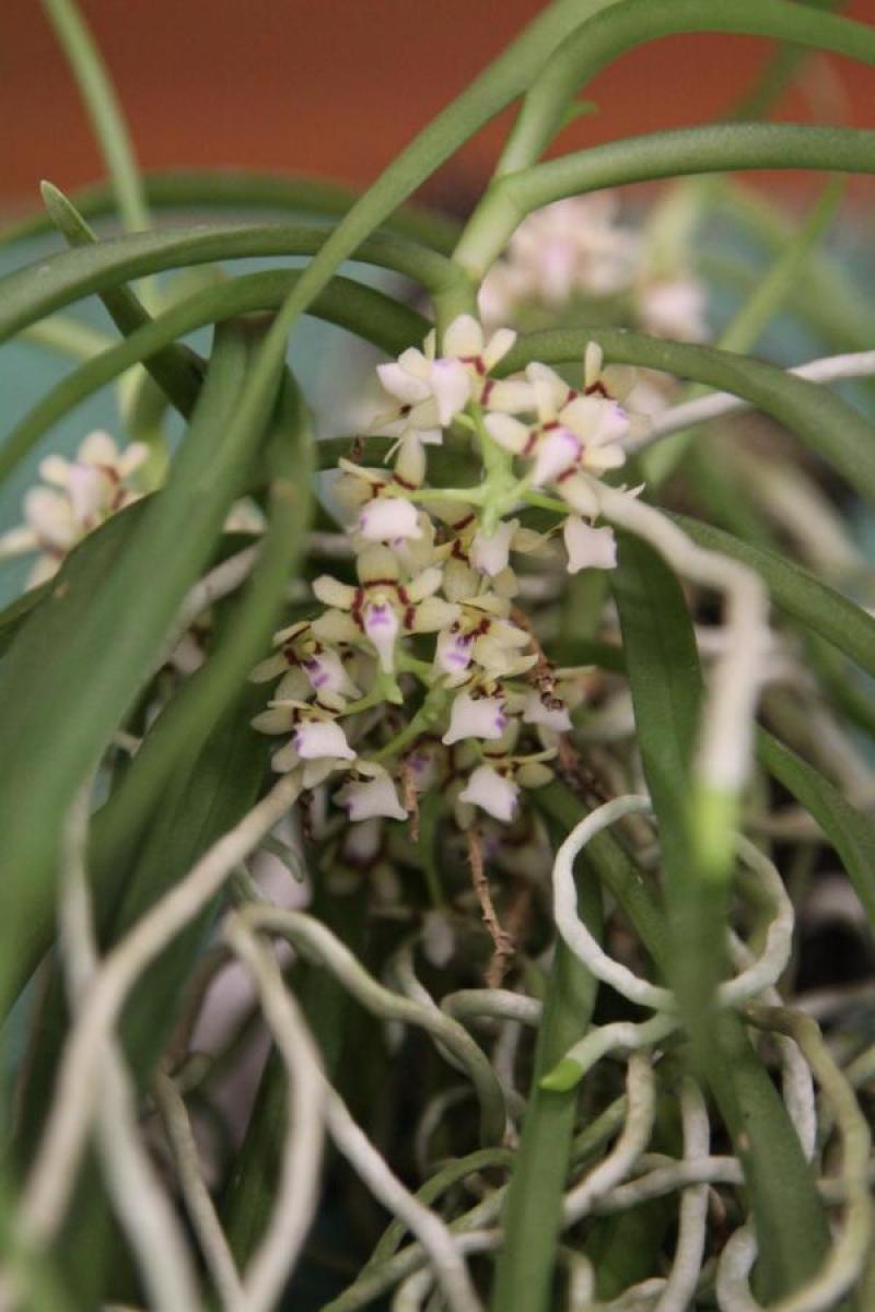 The Very Fragrant Tuberolabium is a monopodial warm to hot growing epiphytic orchid belonging to the sub family Epidendroideae.