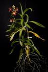 These orchids gather most of their water from their aerial roots, which should be sprayed regularly or kept in a humid environment; roots exposed to dry air that receive no water will die back. On that same note, roots that are inside a pot surrounded by media may also die back, with new roots growing from the stem away from the pot.